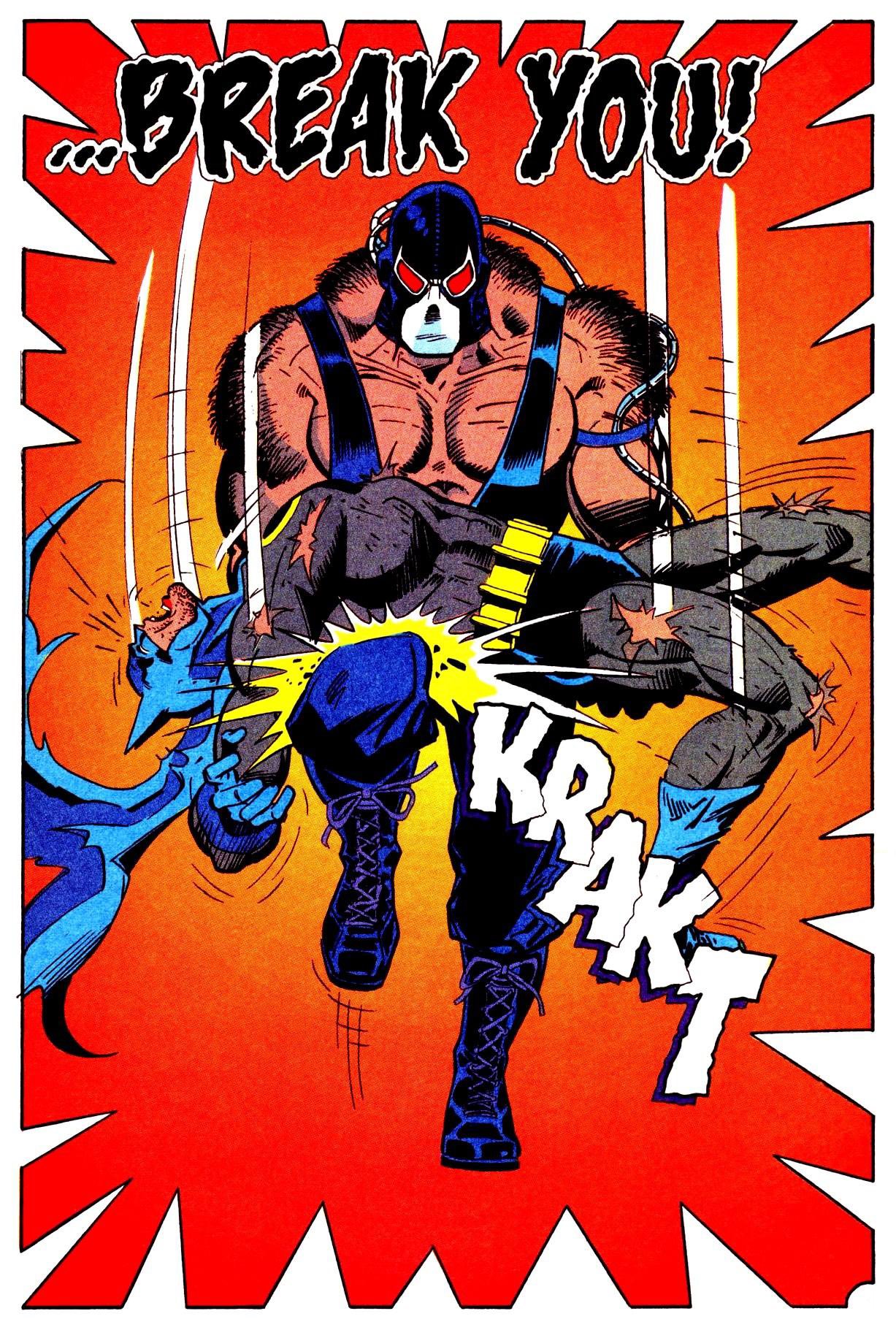 W kolejnych zeszytach obserwujemy między innymi początki działalności Bane’a, postaci stworzonej przez Chucka Dixona, Douga Moencha i Grahama Nolana. Przepracowany już dość mocno przez okołokomiksową popkulturę antybohater – patrz między innymi głupawa interpretacja z filmu Batman i Robin, ale i czerpiąca mocno z Knightfall rola Toma Hardy’ego w Mroczny rycerz powstaje – był wówczas w uniwersum DC zupełnie nową postacią. Bane to z jednej strony egzemplifikacja najntisowego przegięcia (napompowane venomem mięśnie obleka kostium wrestlera rodem z WWE), ale i nowa jakość, jeśli chodzi o antagonistów Batmana. Jest nie tylko potężny, ale i szalenie inteligentny – wszystko to sprawia, że jego imię (tłumaczone u nas jako Zmora lub Zguba) okaże się w kontekście dalszych losów Wayne’a prorocze. Wspomniany Miecz Azraela wprowadza nas z kolei w losy Jeana Paula Valleya, powiązanego z sektą o nazwie Zakon Świętego Dumasa. Valley, który z czasem przywdzieje kostium Batmana, to kluczowa postać całego cyklu. Prolog jedynie sugeruje, z jak poważnymi problemami się zmaga i jak opłakane skutki może to mieć dla całego Gotham.